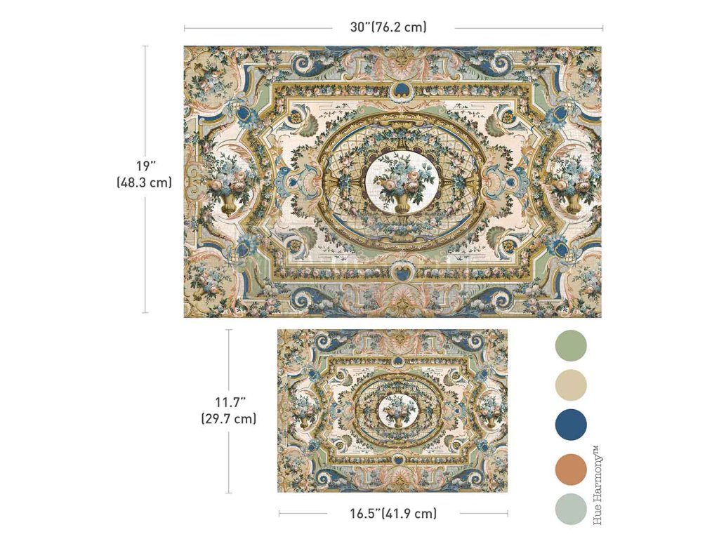 Dodajte svojmu dekoru nádych klasického umenia so Serenade In Blue, úžasnou sadou, ktorá obsahuje dva zladené listy papiera na dekupáž. Detailný dizajn, inšpirovaný starožitnými freskovými stropmi a európskymi gobelínovými motívmi, predstavuje kvetinové dekorácie, architektonické ozdoby a jemné maliarske textúry v modrých, zelených, krémových a teplých terakotových tónoch.